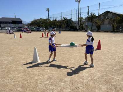 来る10月24日は待ちに待った運動会。2年生にとっては、速星小学校で行う初めての運動会です。この日は学年種目の練習をしました。バランスをとることに苦戦しながらも、友達と協力して、ボールを落とさないように走る子供たちの姿が印象的でした。