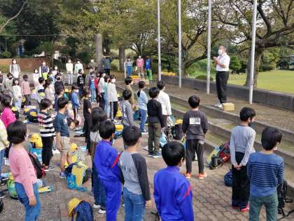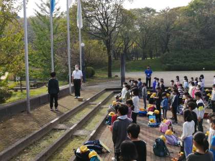 呉羽青少年自然の家に到着しました。入所式を行い、活動開始です。