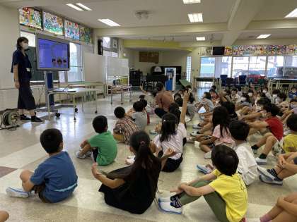 1年生 校外学習に向けて。 公開日 2021/10/14 更新日 2021/10/14 1年生 1年生全員が、ランチルームに集まり、校外学習のやくそくを確かめました。 太閤山ランドにある遊具の写真を見て、14日が楽しみになりました。 やくそくを守り、秋とたくさん仲良くなれる校外学習にしていきます。