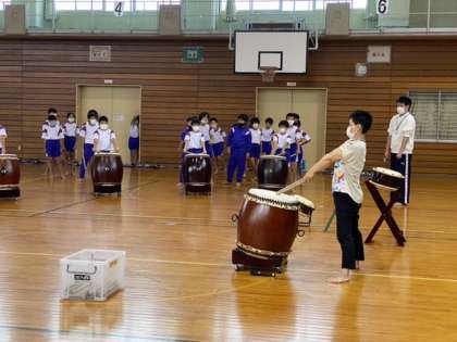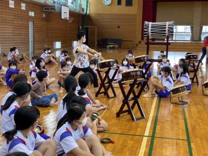 綾乃先生、長原先生との初めてのおはやし練習! 公開日 2021/10/21 更新日 2021/10/21 5年生 今日は、綾乃先生と長原先生をお招きしての初めてのおはやし練習でした。初めて聴くプロの方の演奏に子供たちは圧倒され、ますます太鼓練習へのやる気につなげていました。