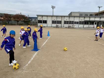 2年生 キックベース 公開日 2021/11/05 更新日 2021/11/05 2年生 体育科の学習ではキックベースをしています。試合で得た気付きをもとに、遠くへ飛ばせる蹴り方や、狙ったところに転がせる蹴り方の練習をしました。次の試合に向けて、意欲を高めていました。