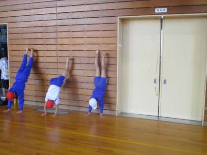 きれいな壁倒立ができるように一人一人目当てをもってがんばっています。