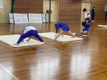 5年生:「マット運動頑張っています!」 公開日 2021/11/18 更新日 2021/11/18 5年生 体育科の学習でマット運動に取り組んでいます。 様々な練習の場で個人の技を磨いたり、ペアで動きを合わせることができるように練習したりしています。 クロームブックで自分たちの動きを見たりもしながら一生懸命取り組んでいます。