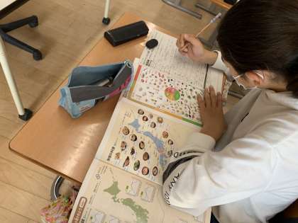 1食分の献立を考えよう 公開日 2021/11/19 更新日 2021/11/19 6年生 家庭科では、栄養バランスのよい食事について学習しています。 一人一人が1食分の献立を考え、グループで紹介し合いました。