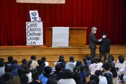 3学期始業式 2 公開日 2022/01/12 更新日 2022/01/12 最近の出来事 下学年に続いて、上学年の始業式を行いました。 さすがは、上学年。校長先生のお話に、 「うん、うん。」と頷きながら聞いたり、「次の“S”はきっと…。」と予想しながら聞いたりしていました。 最後に、校長先生から「『今年取り組みたいこと』」をみんなの前で言える人はいないかな?」の問いに、一人の6年生が堂々と答えていました。