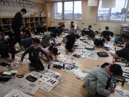 3年生 書き初め大会 公開日 2022/01/12 更新日 2022/01/12 3年生 今日から3学期のスタートです。今年もよろしくお願いします。 書き初め大会を行いました。一画一画真剣に書いていました。冬休みの宿題だった書き初めを見ると、休み中のがんばりが伝わってきました。