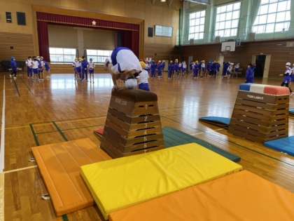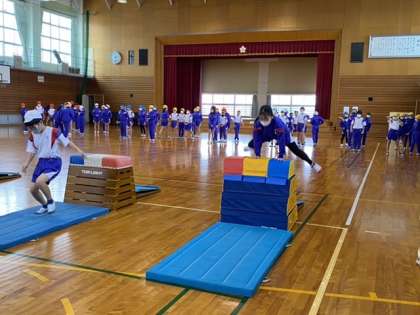 跳び箱にチャレンジしています! 公開日 2022/01/19 更新日 2022/01/19 5年生 体育科の学習では、跳び箱にチャレンジしています。一人一人目当てをもち、自分でコースを決めて開脚跳びや台上前転の練習に取り組んでいます。