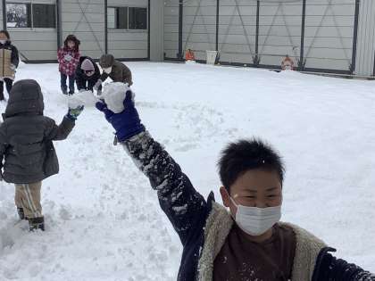 厳しい寒さが続いていますが、子供たちはなわ跳びやボールを使い、元気に運動に取り組んでいます。今日の大休憩、雪遊びをする子供たちの様子を見ていると、雪玉を投げたり、雪だるまを作るために重たい雪の塊を運んだりしていました。冬にしかできない体力作りを楽しむ2年生でした。