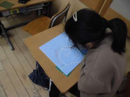 彫刻刀を使いました。けがをしないように気を付けています。