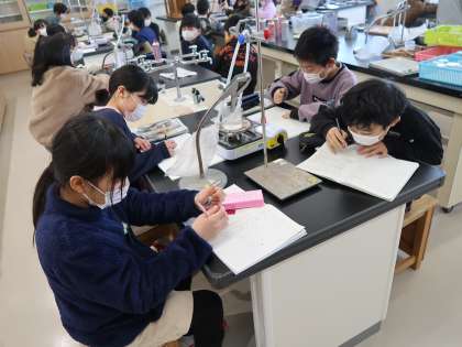熱した後、水はなぜ減ったのだろう? 公開日 2022/02/07 更新日 2022/02/07 4年生 理科では、熱した後の水がなぜ減ったのかを調べる実験を行いました。沸騰してすぐ、水滴が袋にたまっていく様子をみて、気付いたことをノートにまとめていました。