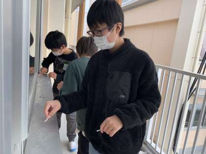 黙働プラス 公開日 2022/02/19 更新日 2022/02/19 6年生 清掃時間の終わりに、自分で見付けた場所の清掃に取り組む「黙働プラス」の時間があります。小学校生活も残り一ヶ月になった6年生。校舎への感謝の気持ちを込めて、清掃に取り組んでいます。