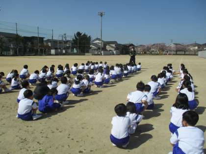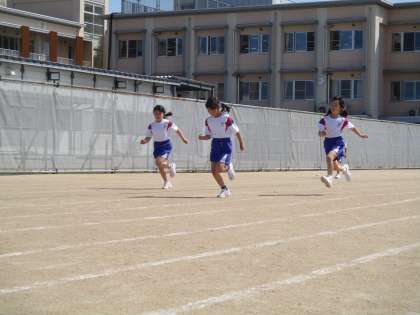 50m走の記録を計りました。青空の下、子供たちは最後まで全力で走り切りました。