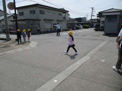 防犯・交通安全教室を行いました。警察署の方から、不審者から身を守る方法や、安全な歩き方について教えていただきました。実際に、学校周辺の道路に出て、横断の仕方や歩道の歩き方を教えていただきながら、安全に気を付けて歩くことができました。