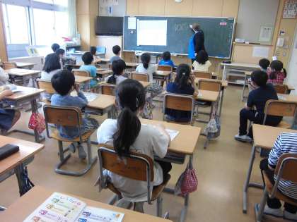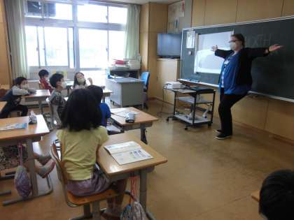 まず、レベッカ先生の自己紹介を聞いたり、質問をしたりしました。そして、いろいろな国の「こんにちは」の挨拶を知ることができました。