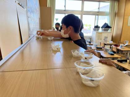 理科の学習では、インゲン豆が発芽するための条件について調べています。子供たちは生活で得た経験から、発芽に必要なものについて話し合っていました。水は?土は?空気は?日光は?どの学級も話し合いが盛り上がりました。これから友達と協力しながら、調査を進めていきます。
