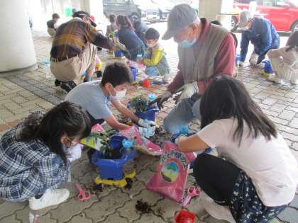 2年生 野菜の苗植え 公開日 2022/05/13 更新日 2022/05/13 2年生 地域の苗屋さんで買った野菜の苗を鉢に植えました。長寿会の方々も手伝ってくださり、上手に植えることができました。これから大切に育てていきます。長寿会の皆様、ご協力ありがとうございました。