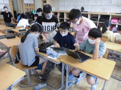 6年生は、6月3日(金)に岐阜県高山市に校外学習へ出かけます。今日は、各班で相談し、グループ学習の計画を立てました。子供たちは、地図等を見ながら、経路を確認したり、自分たちが行きたい場所を相談したりしていました。