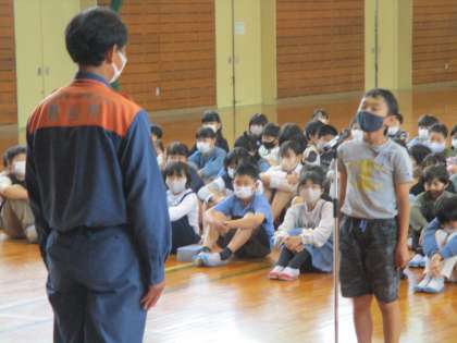 その後、5年生の代表児童より、今日学んだことを生かして防災意識を高めていきたいという思いを伝え、BFCの誓いを全員で宣誓しました。