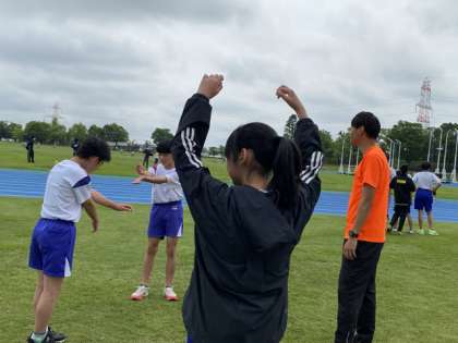 5、6年生が富山市小学生陸上競技交流大会に出場します。写真は100メートルに出場する子供達のアップの様子です