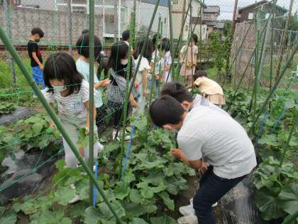 子供たちと一緒に、野菜もぐんぐん育ち、最近ではピーマンやオクラ、キュウリがたくさん獲れています。「アブラムシがたくさん!どうしよう」「うどんこ病っていう病気なんだ。できることはあるかな」など、たくさん悩みながらも、一生懸命お世話を頑張っています。家で進んで調べ学習を行ったり、対策スプレーを用意したりする子供の姿も見られます。ご家庭でのご協力、ありがとうございます!