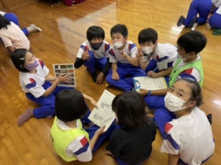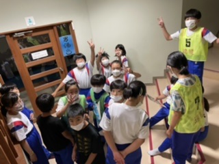初めての宿泊学習のスタートです! 公開日 2022/07/04 更新日 2022/07/04 5年生 今日から一泊二日の宿泊学習です。悪天候のため、午前中は館内オリエンテーリングです。館内に隠されたマークを、地図を頼りに探します!