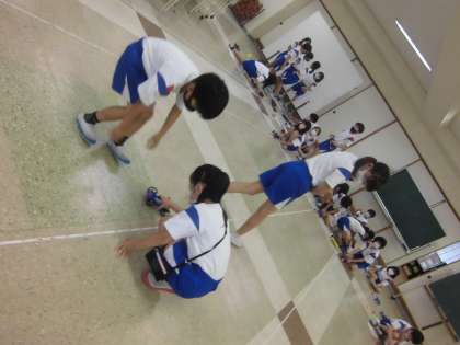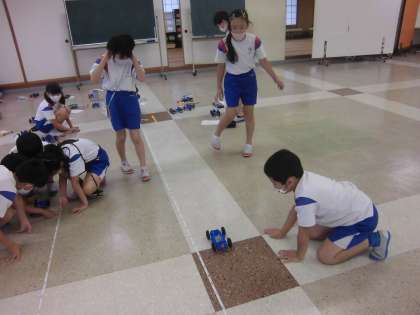 算数での、巻き尺で長さを測った経験も生かしながら、グループで協力しながら活動していました。