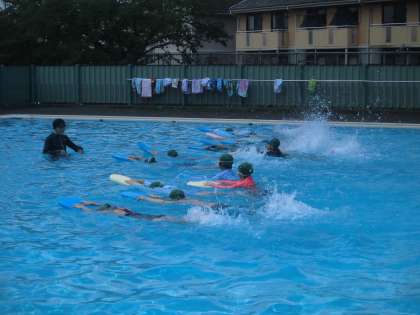 伏し浮きやバタ足の仕方が上達した子供たちです。