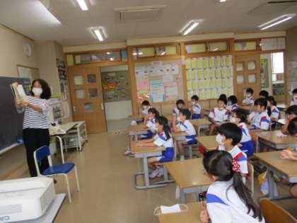 2年生 お話の会がありました! 公開日 2022/07/20 更新日 2022/07/20 2年生 7月15日(金)2年生はお話の会がありました。子供たちが大好きなイベントの一つです。目を輝かせながらお話の世界に入り込んでいました。読んでいただいた本を「今度探して借りたいな〜!」と話す子供もいました。お話の会のみなさん、本当にありがとうございました。 夏休みは時間があるので、子供たちにもたくさんの本を読んでほしいと思います!
