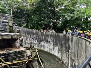 雨にも負けず、子供たちは元気いっぱいです。まずはホンドザルを見に来ました。