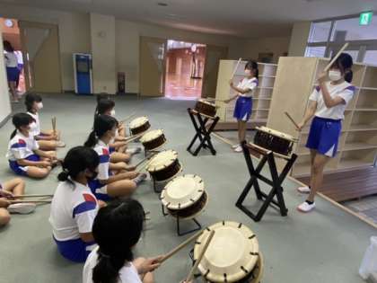 放課後おはやしクラブの活動をがんばっています 公開日 2022/10/07 更新日 2022/10/07 最近の出来事 9月から発足した放課後おはやしクラブの活動の様子です。 今日は6年生を中心にグループでしの笛や担当太鼓の練習を行いました。