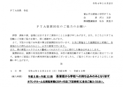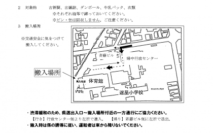 5月に開催をした資源回収と同様に、各家庭からの持ち込みとなります。