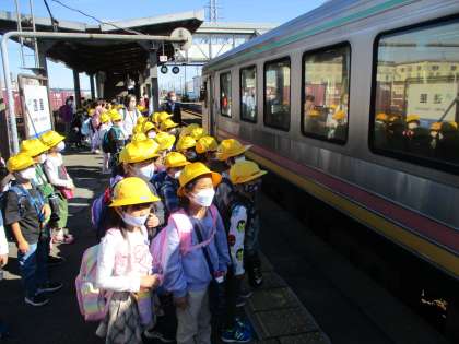 1年生は21日に高山線に乗って校外学習に行きました。初めて電車に乗る子も多く、子供たちは朝からドキドキわくわくが止まりませんでした。電車が駅のホームに到着すると、嬉しそうな声を上げていましたが、車内ではしっかりとマナーを守って電車の旅を楽しんでいました。