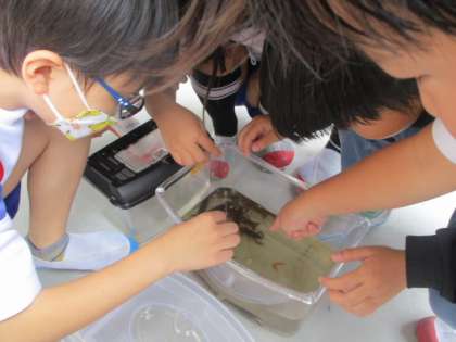 2年生 ザリガニとなかよし! 公開日 2022/11/09 更新日 2022/11/09 2年生 2年生は生活科の時間にザリガニについて学習しています。 はじめは怖くて触れなかった子供も、今では「かわいい〜!」と言って持ち上げることができるまでに仲良くなりました。 図画工作科の時間には、仲良くなったザリガニを迫力満点の絵で表そうと、取り組んでいます。できあがりが楽しみです!