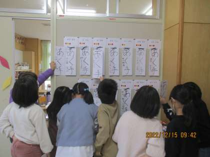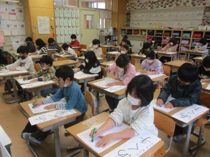 2年生 書き初め 公開日 2022/12/20 更新日 2022/12/20 2年生 書き初め大会に向けて一生懸命練習をしています。今年2年生が挑戦する文字は「あく手」です。姿勢を正し、気合いを入れ、前回より少しでも上達できるようにと頑張っています。