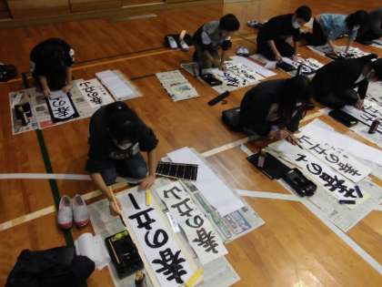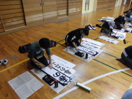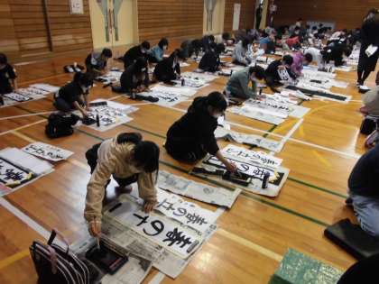 今日は書き初め大会が開かれました。練習の成果を発揮しようと4年生は真剣に取り組んでいました。