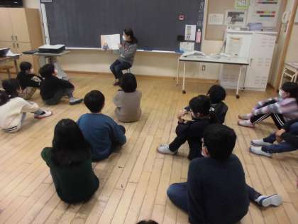 お話の会がありました(4年生) 公開日 2023/01/23 更新日 2023/01/23 4年生 お話の会で絵本の読み聞かせをしていただきました。楽しいお話の世界に引き込まれた子供たちの姿が見られました。ありがとうございました。