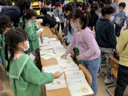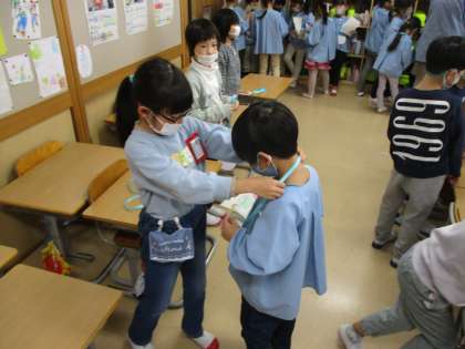 品物を買いに来た、保育園児、幼稚園児に「〇〇って言うんだよ。」「こっちだよ。」など優しく声を掛けてあげていました。