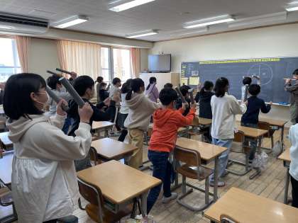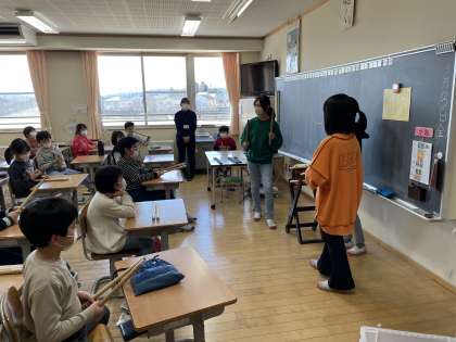 太鼓のキレのいい音が教室に響きました。6年生、ありがとう。