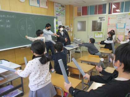 2年生 お囃子体験 公開日 2023/03/06 更新日 2023/03/06 2年生 6年生が企画してくださった「お囃子体験」がありました。ばちを持たせてもらい、リズムを教えてもらい、みんなでお囃子の練習をしました。子供たちからは「お囃子楽しい!」という声がたくさん聞こえてきました。