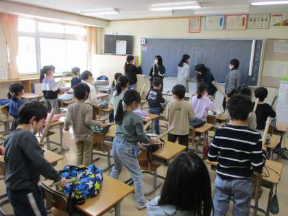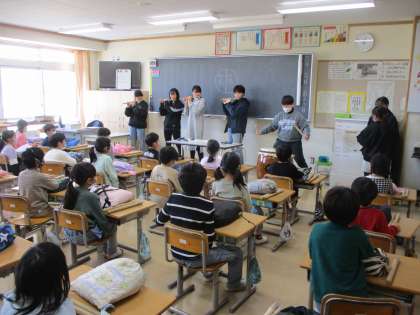 3月3日(水)と3月9日(木)に、速星小学校の伝統である、お囃子を体験しました。6年生に教えられながら、どの子も一生懸命お囃子に取り組んでいました。