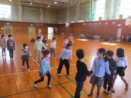 3学期最後の学年集会をしました。伝言ゲームやだるまさんがころんだ等、学年みんなで楽しむことができました。