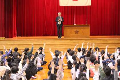 「自分はこんな人になりたい、と言える人は?」との問いかけに、多くの児童が挙手しました。