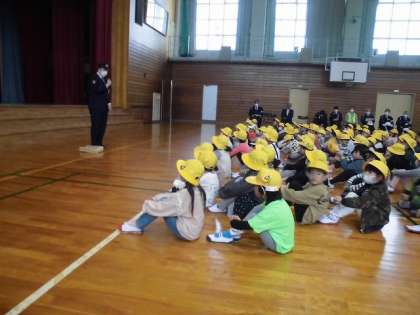 富山西警察署、速星地区防犯組合、富山西防犯協会、婦中交番、交通安全協会より講師をお迎えし、1年生の防犯・交通安全教室を行いました。