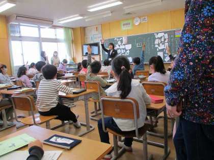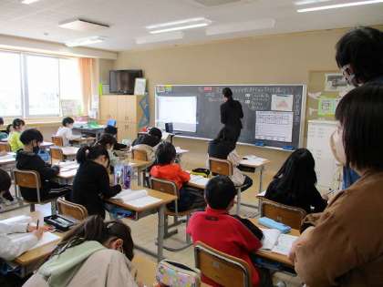 3年生、国語科「きつつきの商売を音読をしよう」、4年生、算数科「グラフや表を使って調べよう」の学習の様子です。「