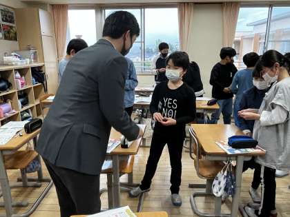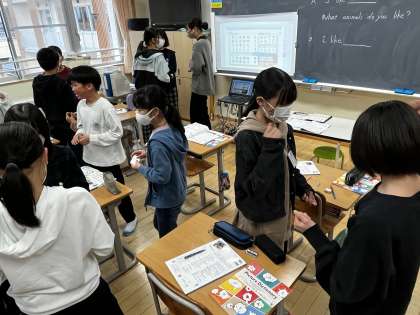 6年生 外国語 公開日 2023/04/28 更新日 2023/04/28 6年生 外国語の学習に新しいALTの先生が来ています。「What animals do you like?」の言葉を使って、自分は何の動物が好きか、互いに伝え合いました。