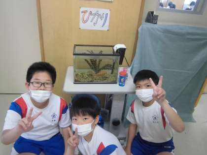 金魚の名前は「ひかり」になりました。生き物当番の子を中心にこれからも愛情をもって飼育していきたいと思います。