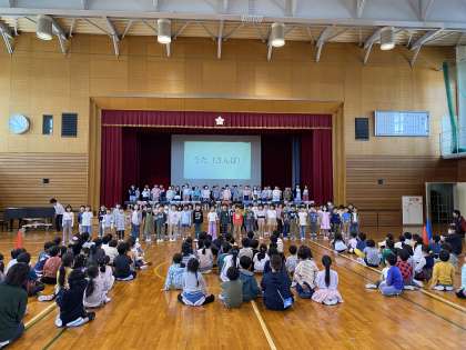 4月28日に2年生の生活科の学習で「1年生入学おめでとう集会」を開きました。2年生は、1年生に「学校の事を伝えたい」「こんな勉強があることを知ってほしい」という思いをもって練習に励み、本番に臨みました。発表する姿から、2年生としての成長を感じることができました。