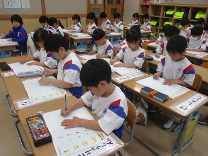 入学してから1か月、子供たちは姿勢や鉛筆の持ち方に気を付け、一生懸命学習に取り組んでいます。みんなの前で自分の考えを発言したり、友達の話をじっくり聞いたりすることにもだんだん慣れ、上手になってきました。