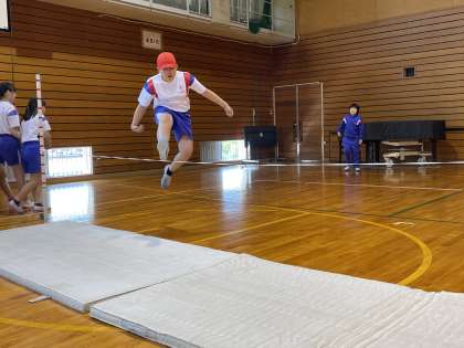 6年生 走り高跳びに挑戦中! 公開日 2023/05/17 更新日 2023/05/17 6年生 体育で走り高跳びをしています。今日は、120cmの高さに成功する子供の様子もみられました!目標の高さに到達できるよう、練習していきたいと思います。