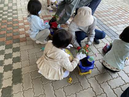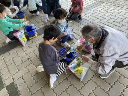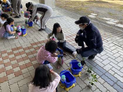 2年生は長寿会の方と一緒に野菜の苗植えを行いました。気を付けるポイントを教えてもらいながら、丁寧に苗植えをする姿が印象的でした。
